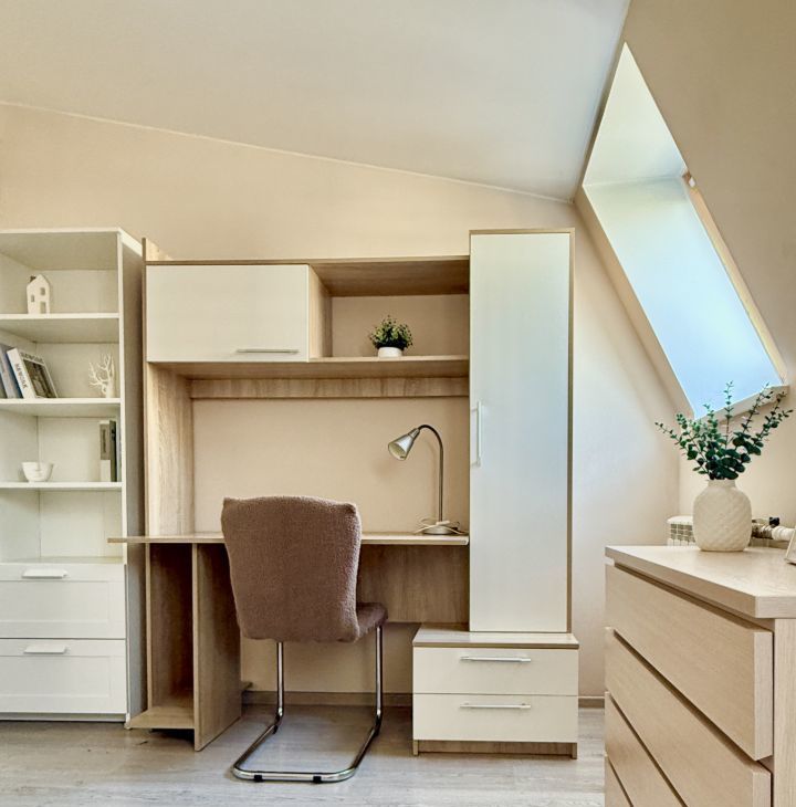 В квартире две отдельные комнаты, спальня с полноценной кроватью и вместительным гардеробом, кабинет с рабочей зоной и кроватью.