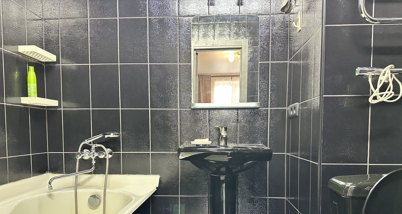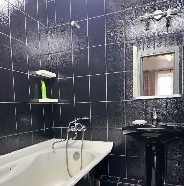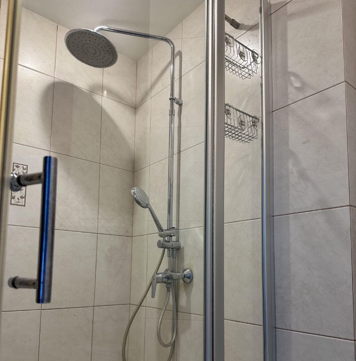 В квартире два санузла, один с ванной при спальне, второй - с душевой кабиной рядом с гостиной комнатой.