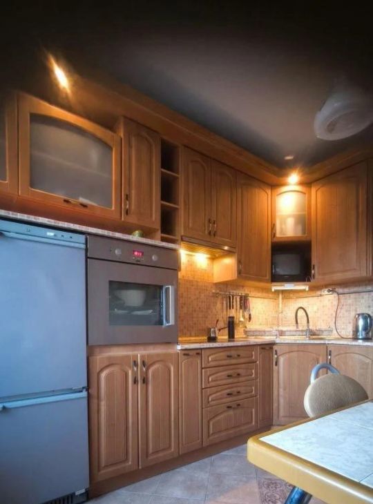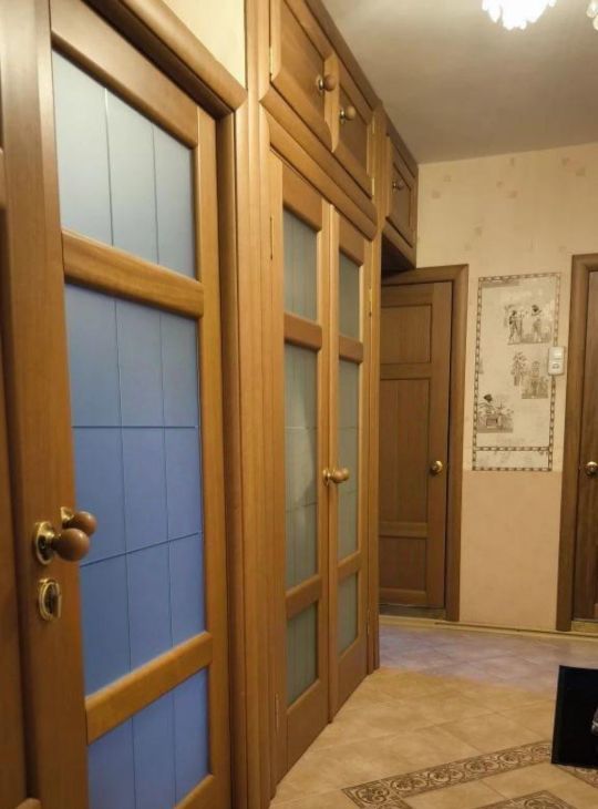 В квартире много места для хранения, все двери и мебель изготовлены из натурального дерева.