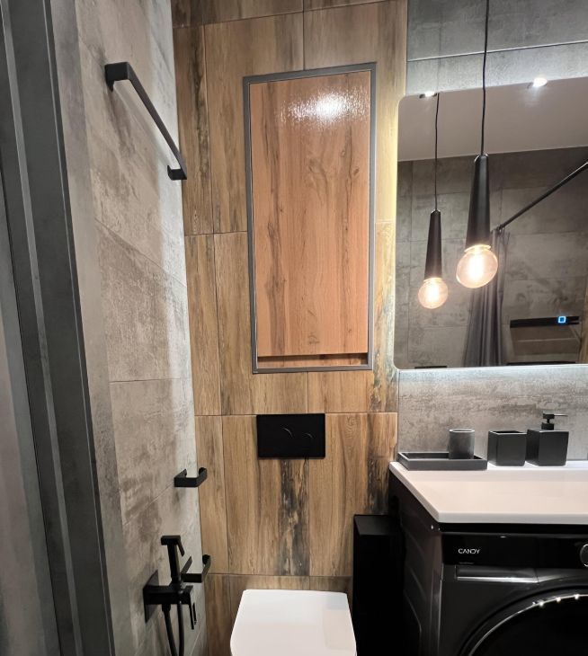 Санузел отделан кафельной плиткой и оборудован