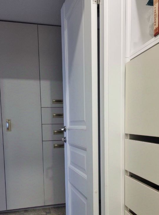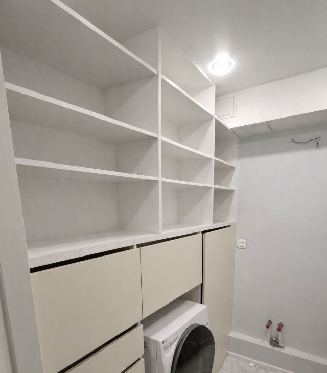 Все шкафы встроенные, много места для хранения.