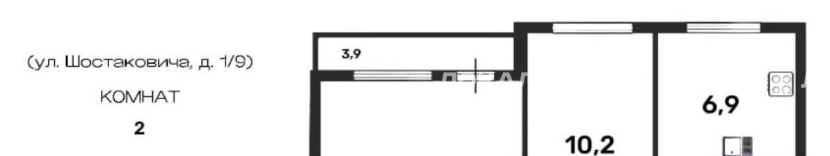2-к кв. Санкт-Петербург ул. Шостаковича, 1/9 (45.8 м²)