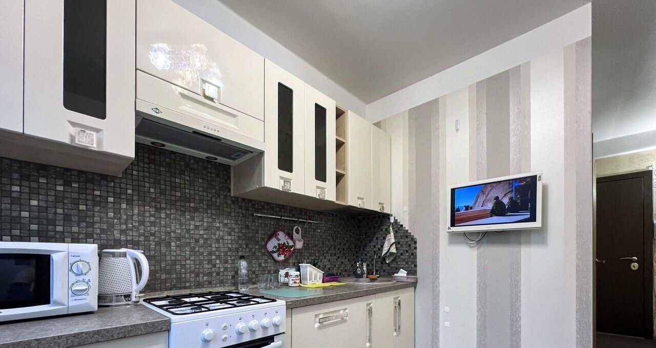 В уютной спальне большая кровать с отдельными 2-мя! Ортопедическими матрасами обеспечит спокойный и комфортный сон для обоих. Отличная стиральная машина Bosch, новый холодильник, кухня со всем необходимым, в том числе вторым телевизором — быт не испортит Вам настроение!