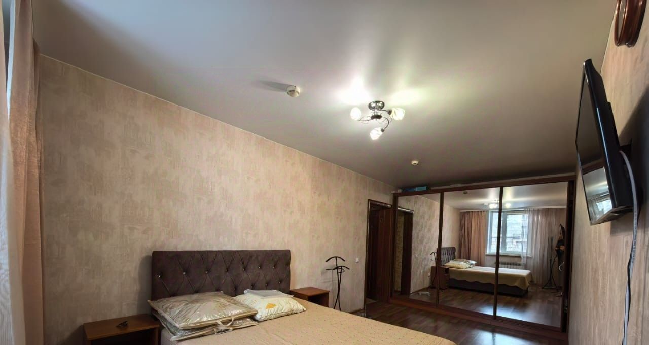 Квартира выполнена в стиле "евроремонт". В жилой зоне площадью 33 кв. м есть вся необходимая мебель для комфортного проживания. Кухня площадью 15 кв. м оснащена мебелью и техникой, включая холодильник, телевизор и стиральную машину. В ванной комнате установлена ванна, что позволит расслабиться после трудного дня.
