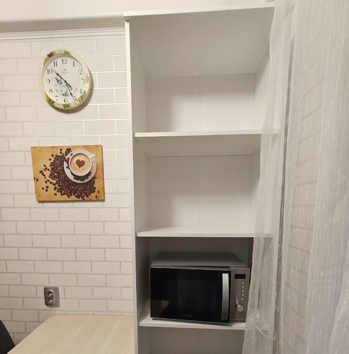 Кухня оборудована всей необходимой техникой: холодильник, плита, микроволновая печь, чайник, посудомойка, электро духовка.
