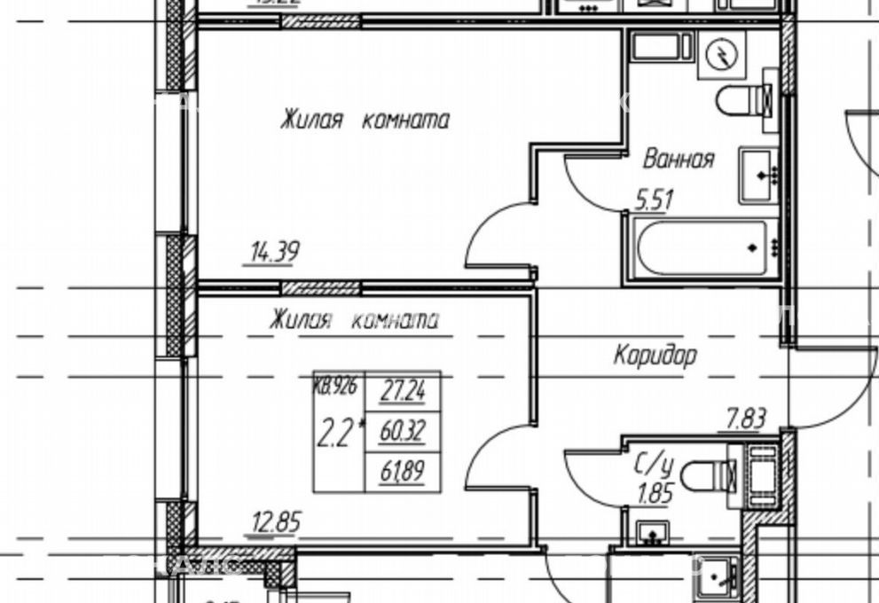 2-к кв. Санкт-Петербург ул. Среднерогатская, 11к2 (60.0 м²)