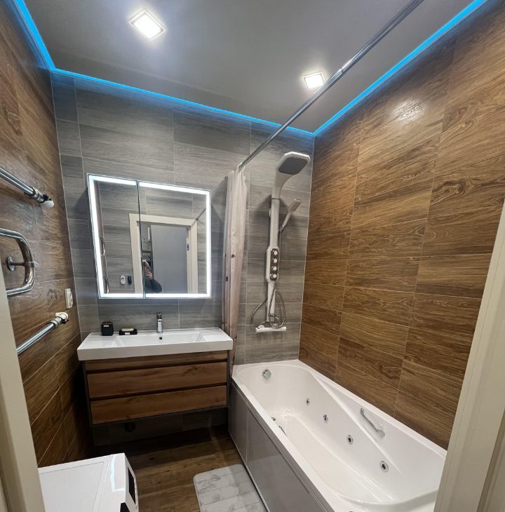 Квартира в отличном состоянии, есть всё необходимое для комфортного жилья. Мебель и техника в наличии. Раздельный с/у. В ванной большая джакузи, подсветка. Кухня-столовая более 30м. На фото всё видно. Красивый вид из окна, последний этаж. Квартира тихая, соседи русские, спокойные. Два лифта. В доме очень много магазинов, кафе, пекарни, аптек, парикмахерских, озон, вб и другие. Есть места для парковки авто во дворе, в крайнем случае всегда можно поставить через дорогу. Имеется подземный паркинг. Квартира Сдается на прямую от хозяина квартиры, без посредников.