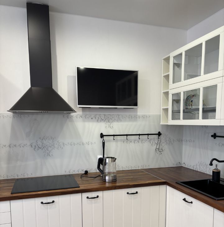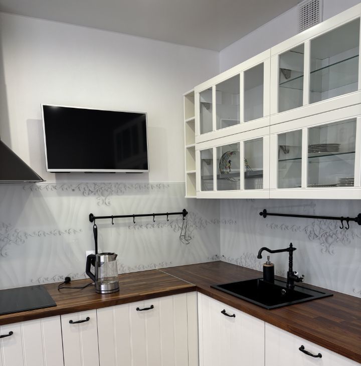 В квартире сделан евроремонт, что создаёт атмосферу уюта и современного стиля. Просторная кухня укомплектована всей необходимой мебелью и техникой: есть холодильник, посудомоечная машина и плита. В комнатах также имеется мебель для комфортного проживания. Ванная комната оснащена ванной и стиральной машиной. В квартире установлен кондиционер и телевизор, а также подключен интернет.
