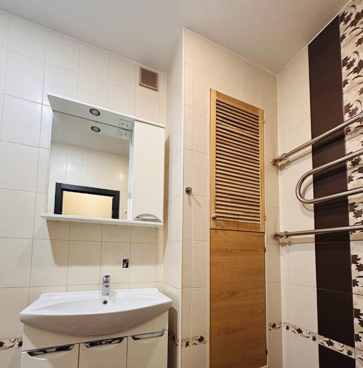 - Ванная комната оснащена ванной, что особенно приятно после долгого дня, Стиральная машина автомат. Санузлов в квартире два: один совмещенный и один отдельный, что удобно для проживания семьи. Из окон квартиры открывается вид во двор, что обеспечивает тишину и спокойствие.