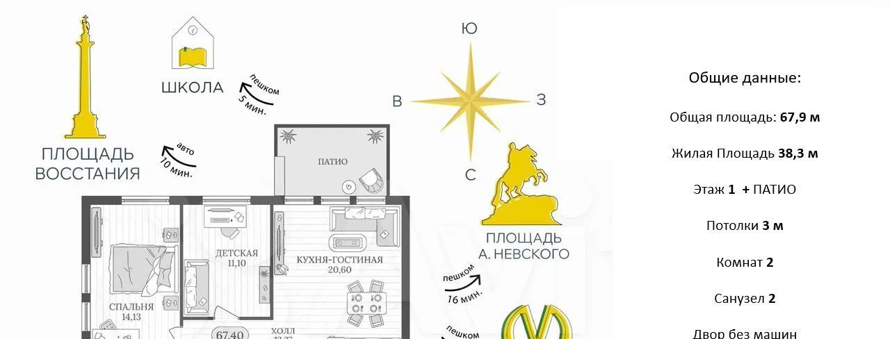 Редкий формат для Санкт-Петербурга — приватное патио + увеличенные дверные проёмы + полная комплектация.