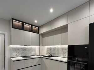 Кухня 10 м² интегрирована в гостиную зону (42 м²), создавая единое стильное пространство для жизни и приема гостей. Вся техника для комфортного быта уже на месте!