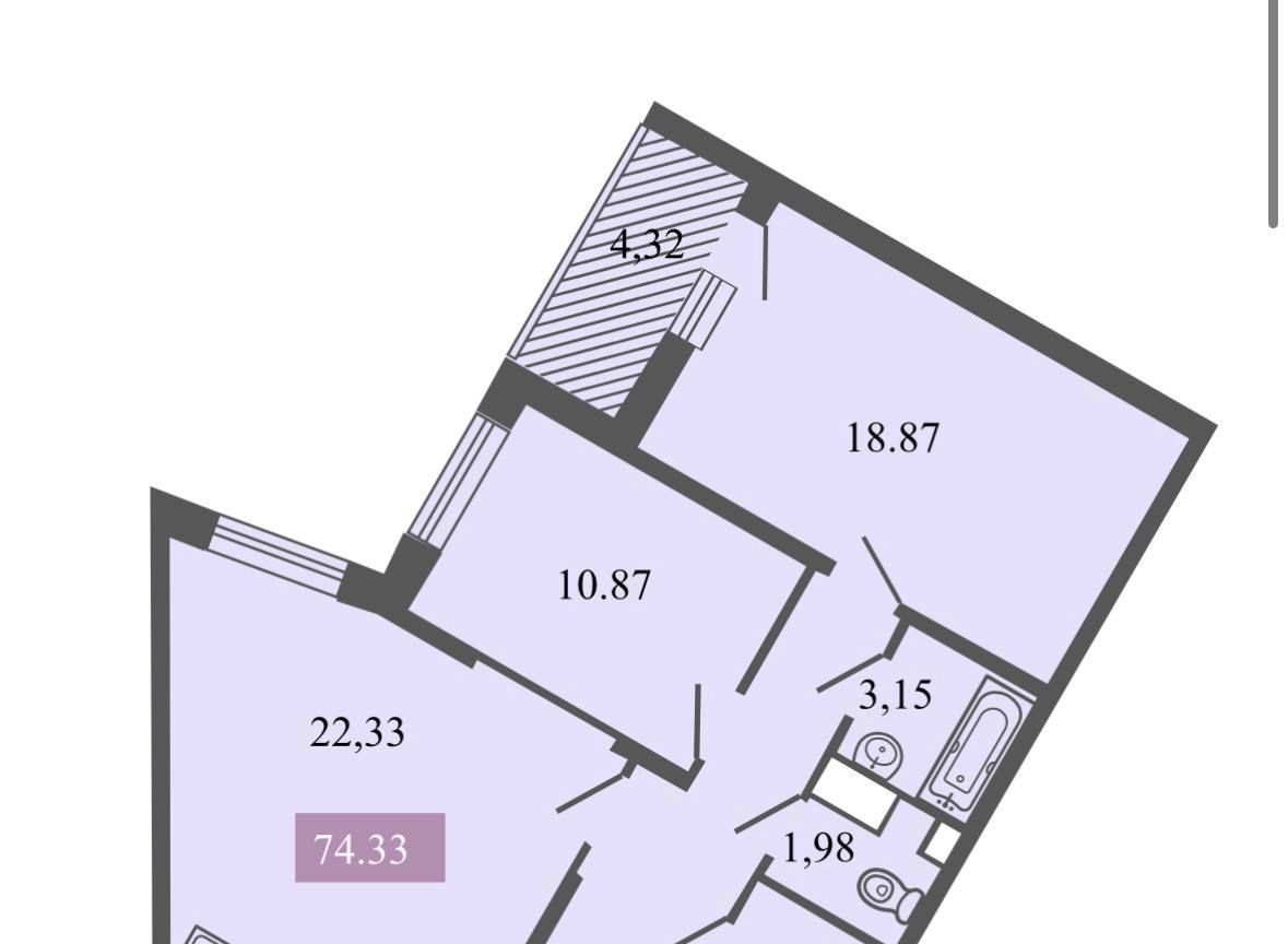 2-к кв. Санкт-Петербург ул. Типанова, 23с1 (74.3 м²)