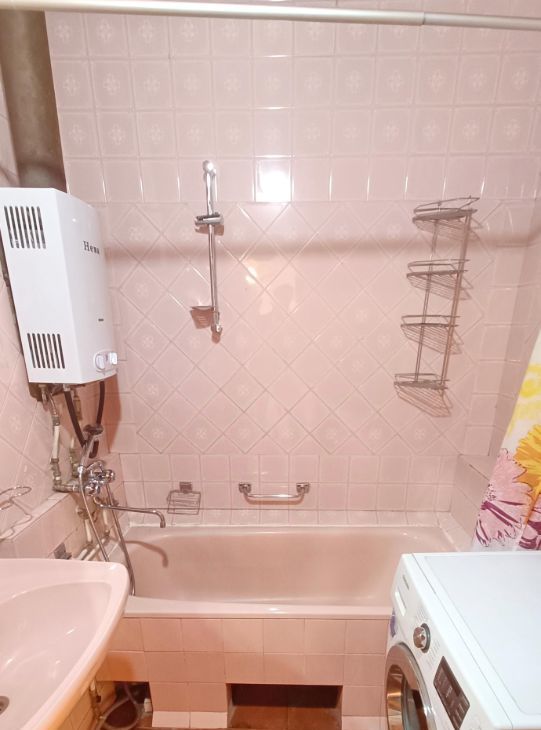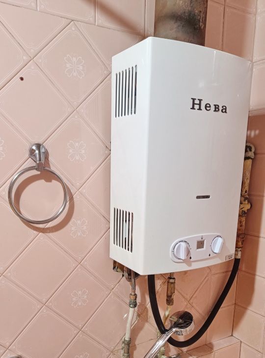 Стоит газовая колонка, поэтому всегда есть горячая вода