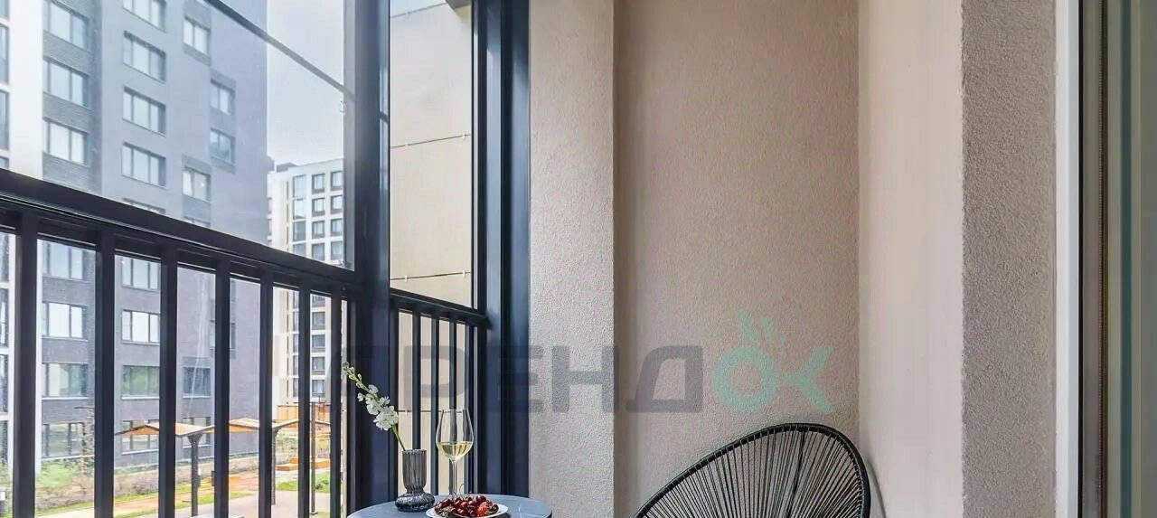На лоджии с видом на закрытый двор вы сможете насладиться утренним кофе или вечерним бокалом вина.