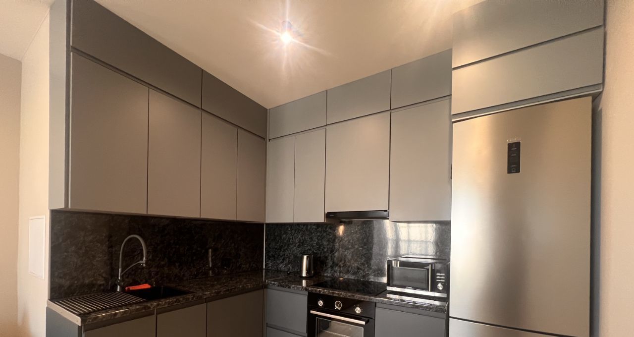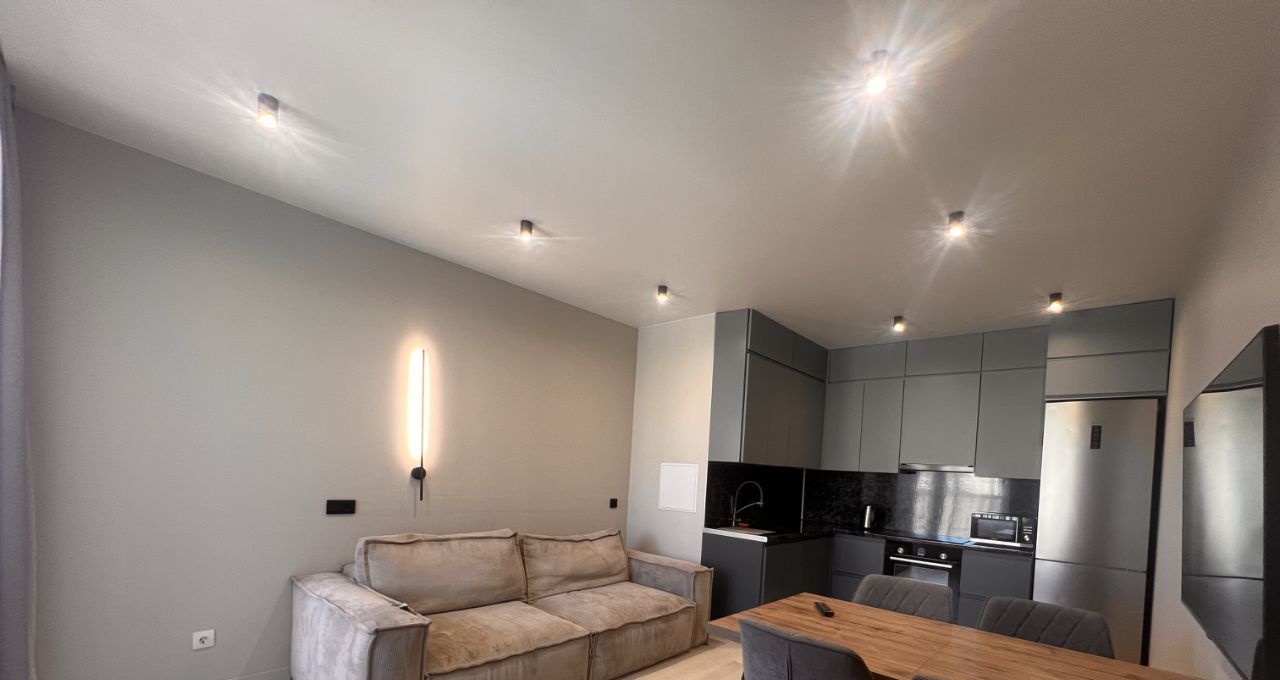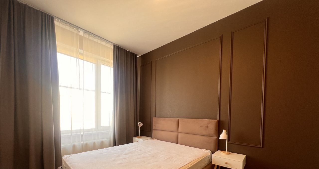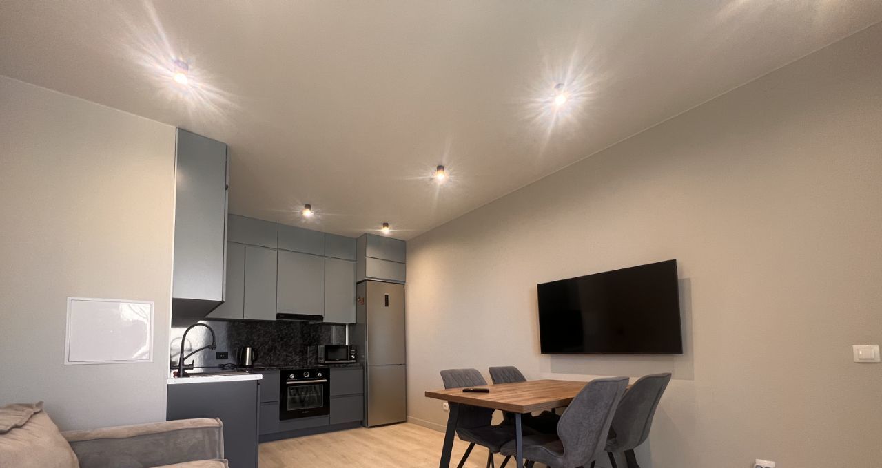 В квартире выполнен дизайнерский ремонт в минималистичном стиле. Имеется вся бытовая техника, включая посудомоечную машину и стиральную машину. В квартире просторная кухня площадью 20 кв.м. и 2 спальни 11 и 13 кв.м.