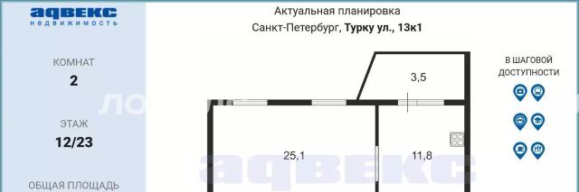 2-к кв. Санкт-Петербург ул. Турку, 13к1 (68.0 м²)