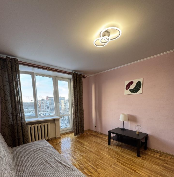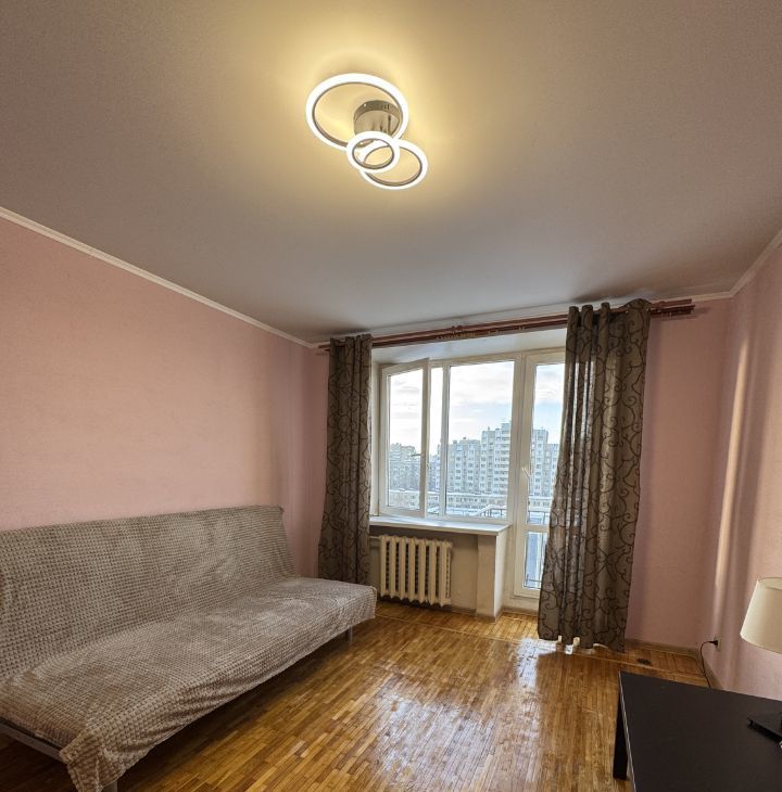 Квартира на девятом этаже кирпичного дома.