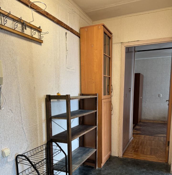 В квартире имеется вся необходимая мебель: шкафы, диван, кровати, журнальный столик, кухонный гарнитур, обеденный стол и табуретки, вешалка и стеллаж в прихожей.