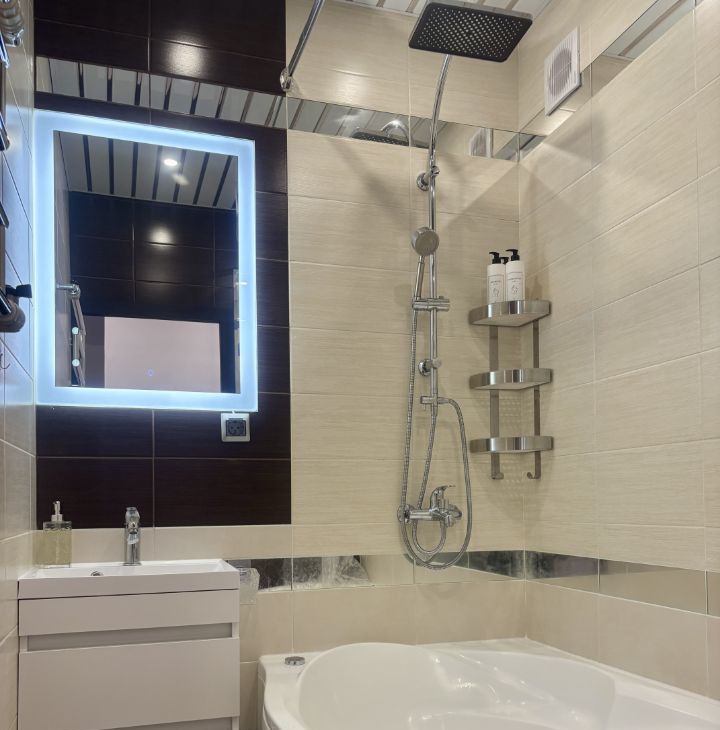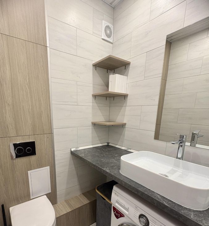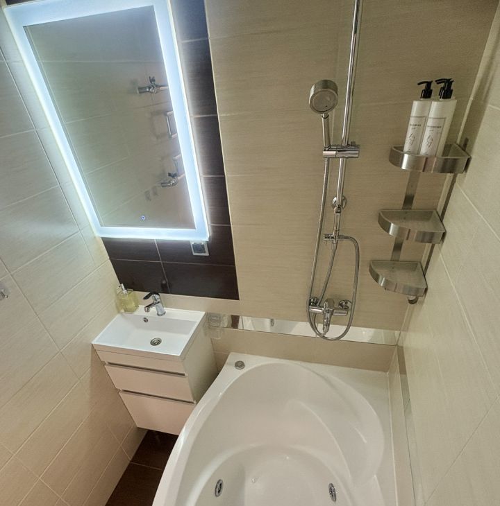 Санузел: Раздельный. В ванной комнате (2,5 м2) установлена гидромассажная ванна — релакс в любое время. В туалете (1,7 м2) удобно расположена стиральная машина