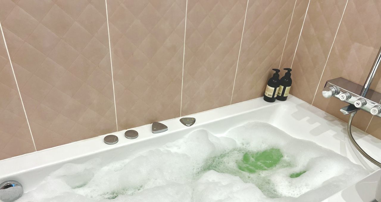 - Санузел с ванной-джакузи, стартовый набор средств гигиены.