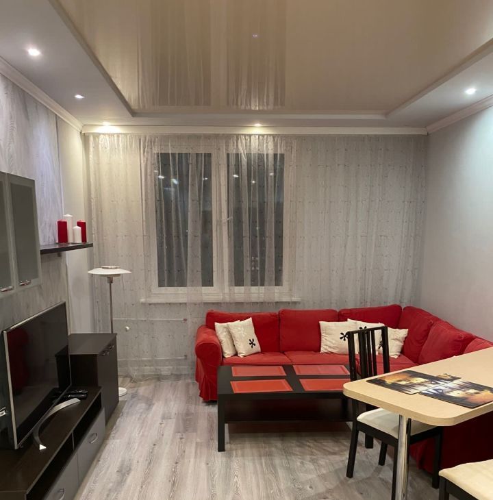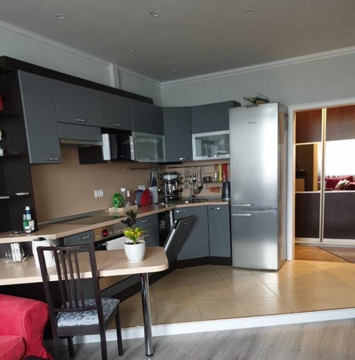 В квартире выполнен качественный евроремонт. В наличии современная мебель как на кухне, так и в комнате, что позволяет сразу же заселиться без лишних хлопот. К вашим услугам вся необходимая техника: холодильник, посудомоечная машина, телевизор и стиральная машина. Совмещённый санузел оборудован душевой кабинкой, что добавляет комфорта.
