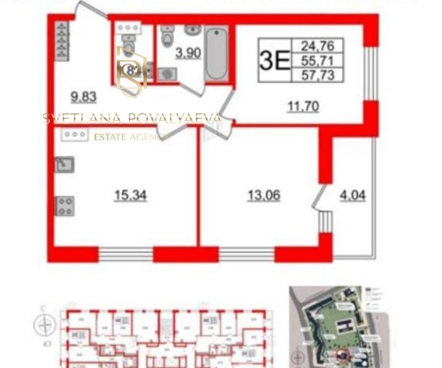 Удобная, функциональная европланировка, большая кухня-гостиная 15,34 кв.м. + просторная лоджия 4,4 кв.м