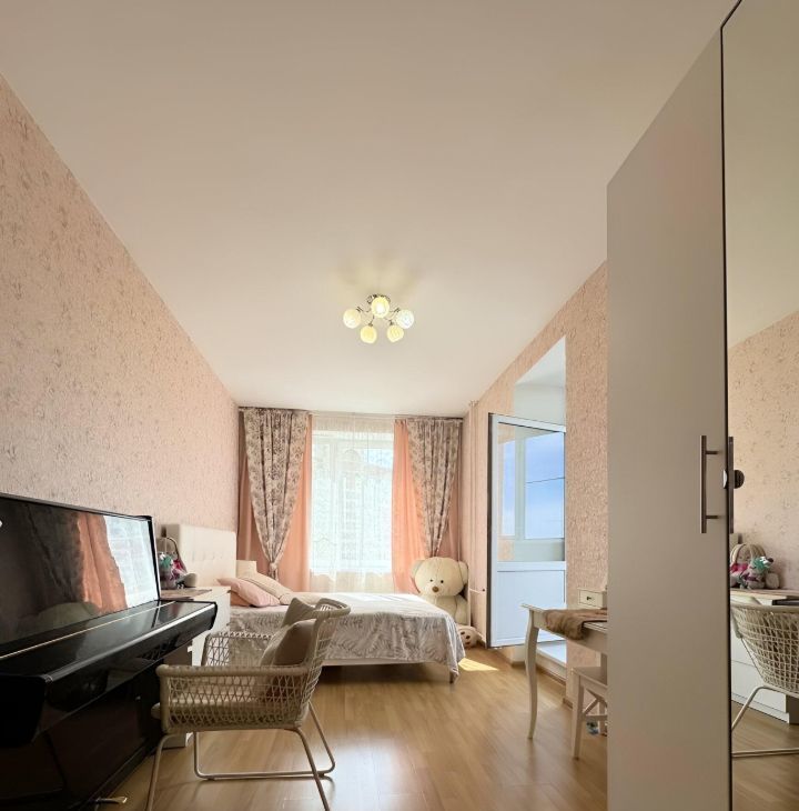 Квартира с ремонтом, выполненным с использованием качественных материалов. Есть вся необходимая мебель и техника. Планировка включает два балкона и гардеробную 3,8 кв.м, что обеспечивает дополнительный комфорт.