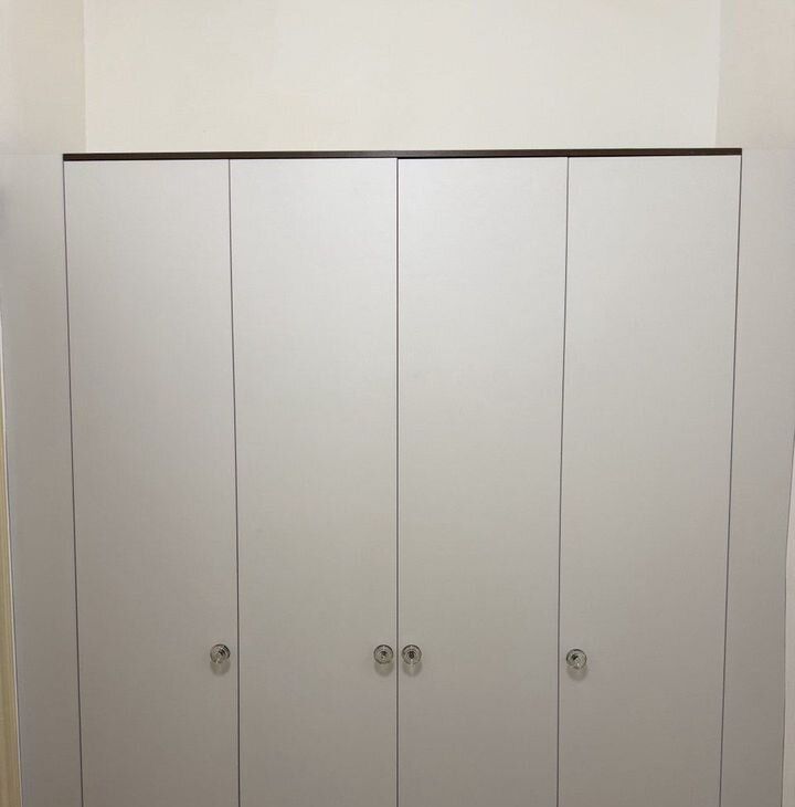 Просторная гардеробная: шкаф в прихожей, шкаф в спальне, антресоль.