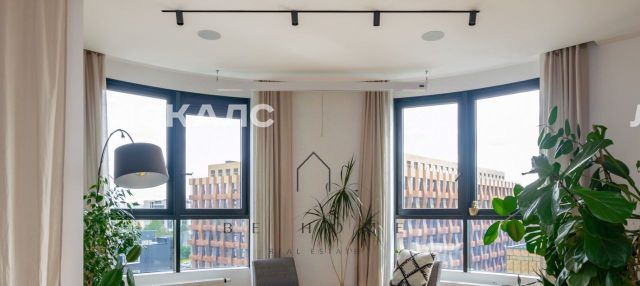 Просторная кухня, совмещённая с гостиной, спальня, ванная комната, гардеробная и застеклённая лоджия.