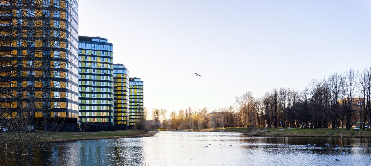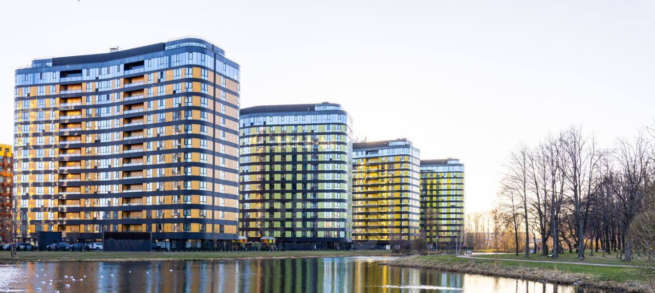 Современный жилой комплекс с охраной в доме, закрытой территорией и видеонаблюдением. Рядом парк и озеро, есть магазины и прочая коммерция.