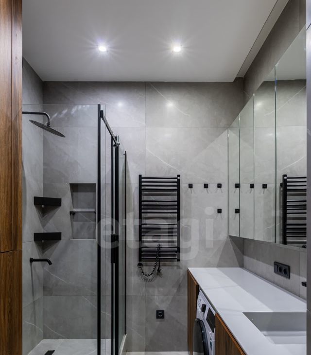 Квартира полностью оснащена всем необходимым для проживания. Есть вся мебель и техника. Много мест для хранения, много различных вариаций освещения. Есть телевизор, кондиционер, посудомоечная машина, электрокамин, бойлер, фильтр питьевой воды, система теплого пола.
