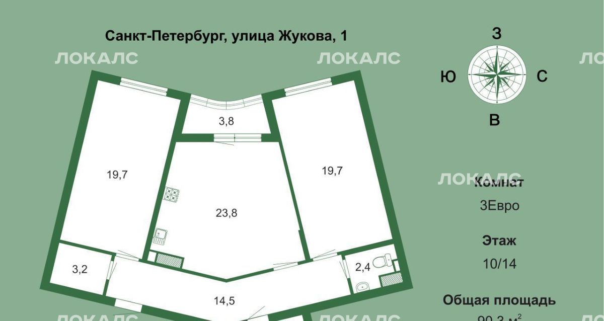 2-к кв. Санкт-Петербург ул. Жукова, 1 (90.3 м²)