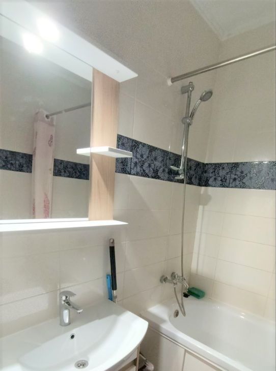 В квартире выполнен евро ремонт. Кухня совмещена с гостиной, оборудована необходимой бытовой техникой, включая телевизор, отдельная спальня с двуспальной кроватью и выходом на просторную лоджию.