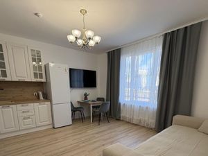 В квартире есть всё необходимое для комфортного проживания: холодильник, плита, микроволновка, стиральная машина, посудомоечная машина, телевизор.