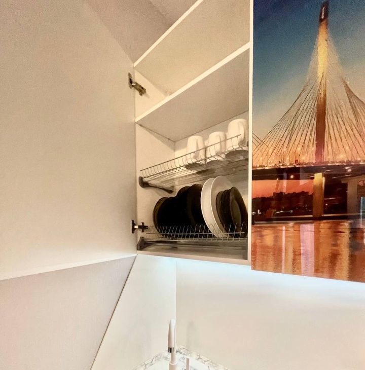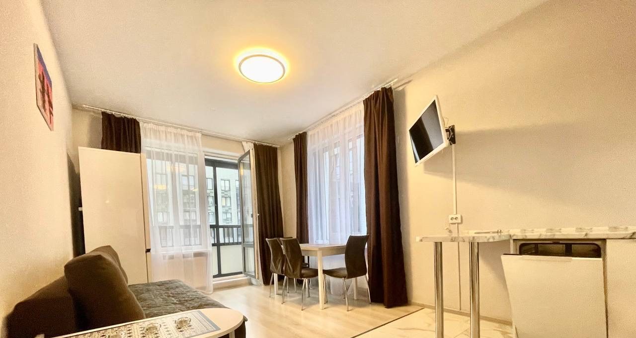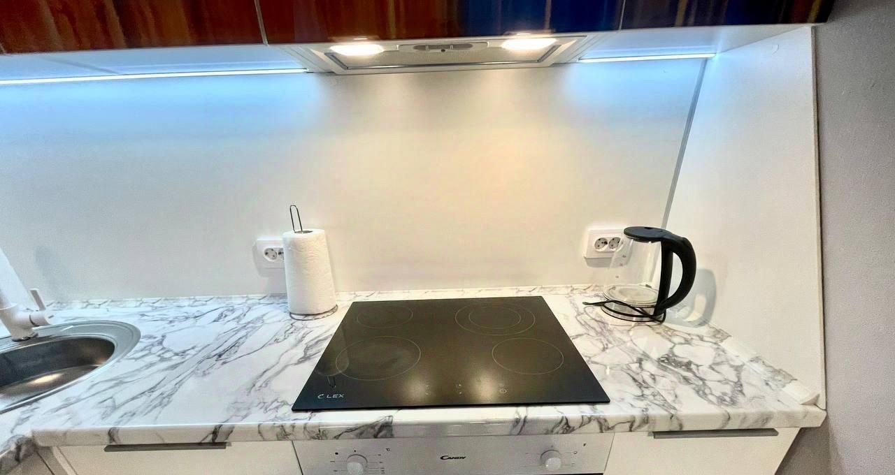 Диваны-трансформер, каркас кровати + ортопедический матрас, зеркальные шкафы-купе для хранения личных вещей, рабочий стол-трансформер, 2 ТВ (диагональ 55), раздвижной кухонный стол + комплект стульев, кухонный гарнитур с встроенной бытовой техникой - посудомоечная машина, духовой шкаф, индукционная плита, вытяжная вентиляция.