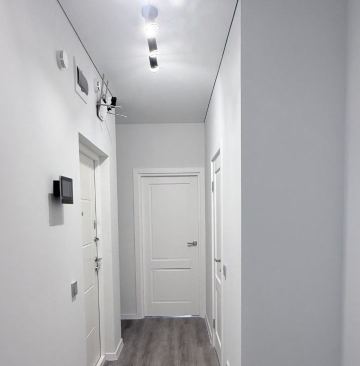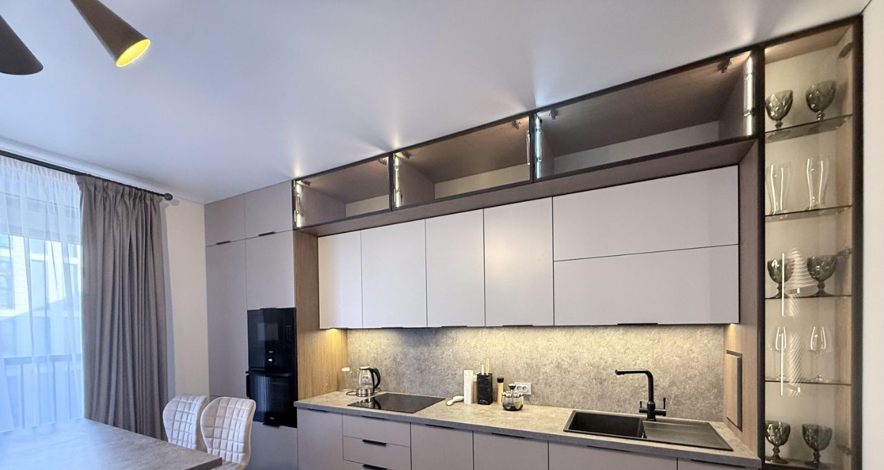 В квартире доделан евро ремонт поле застройщика. В санузлах убраны все трубы, заменены мебель и ванна на большую душевую кабину. Полностью оборудована кухня-гостиная, встроенная техника, дорогая мебель. Покрашены стены. Никто не проживал. Никто не прописан. Ремонт делался для себя. Продается в связи с переездом!