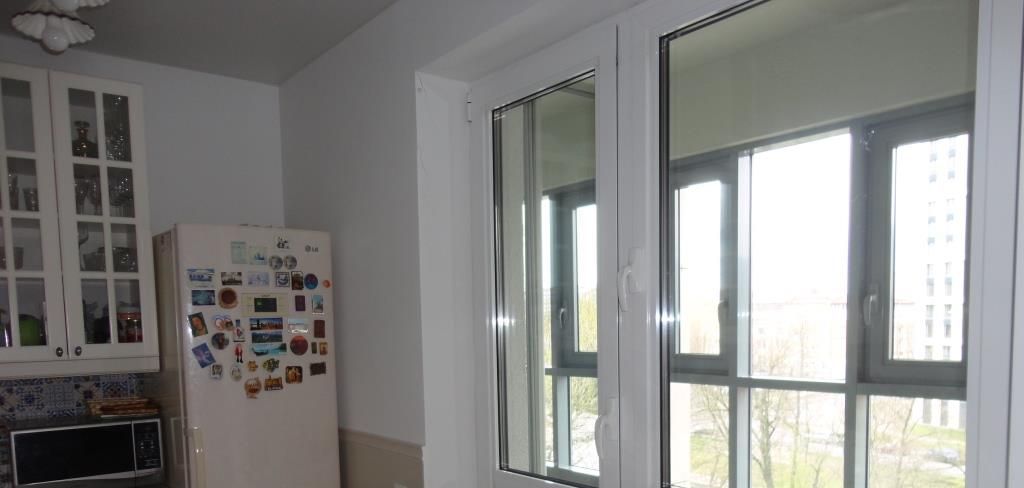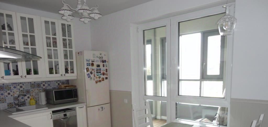Из кухни выход на застекленную лоджию со встроенным шкафом-купе.