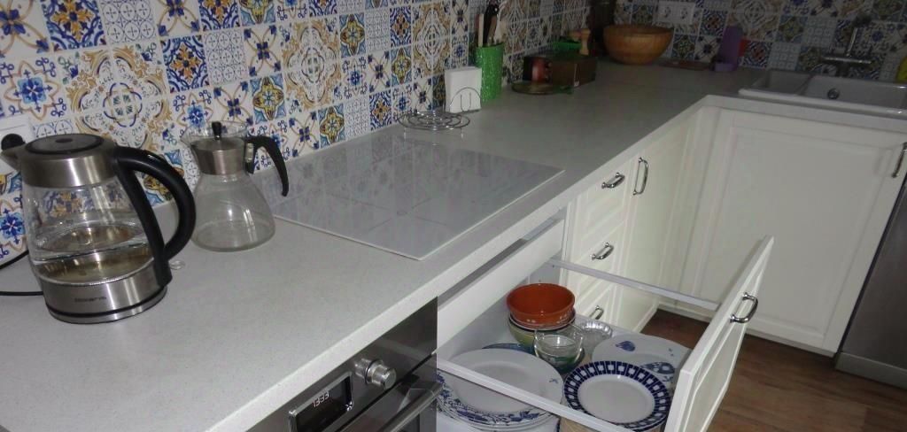 Просторная кухня 12,5 кв.м., выполнена в скандинавском стиле, оснащена всей необходимой техникой, мебелью, посудой.