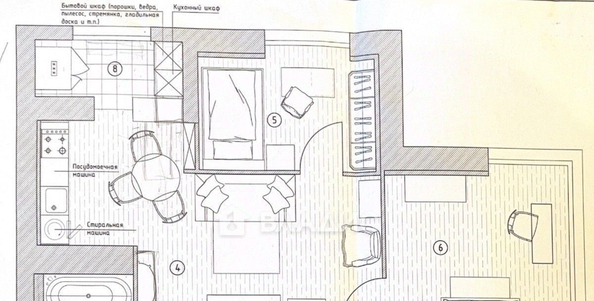 - бытовая техника (холодильник, варочная панель, , микроволновка, духовой шкаф, вытяжка, телевизор, стиральная машина, посудомоечная машина, чайник)
