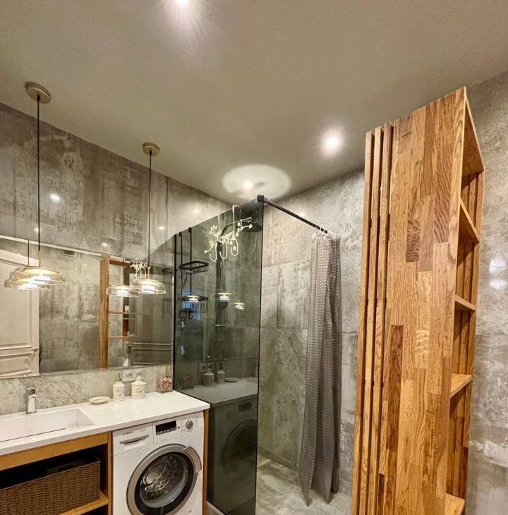 Выполнен качественный ремонт с использованием натуральных материалов (дерево/камень).