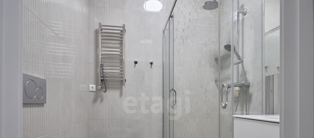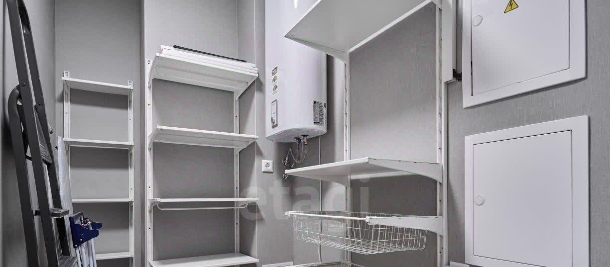 Санузел с душем, эргономичная гардеробная и множество мест для хранения.