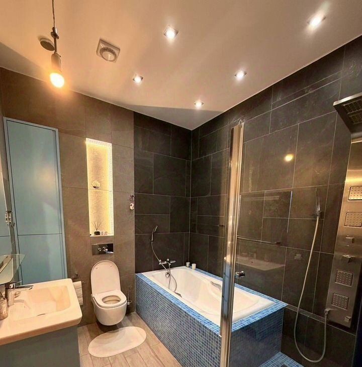 Квартира полностью обставлена мебелью и оснащена всей необходимой техникой: холодильником, телевизором, стиральной и посудомоечной машинами, а также кондиционером. В квартире есть два санузла: совмещенный и отдельный, что удобно для большой семьи или гостей. Ванная комната оборудована как ванной, так и душевой кабиной, поэтому каждый сможет выбрать комфортный для себя вариант.