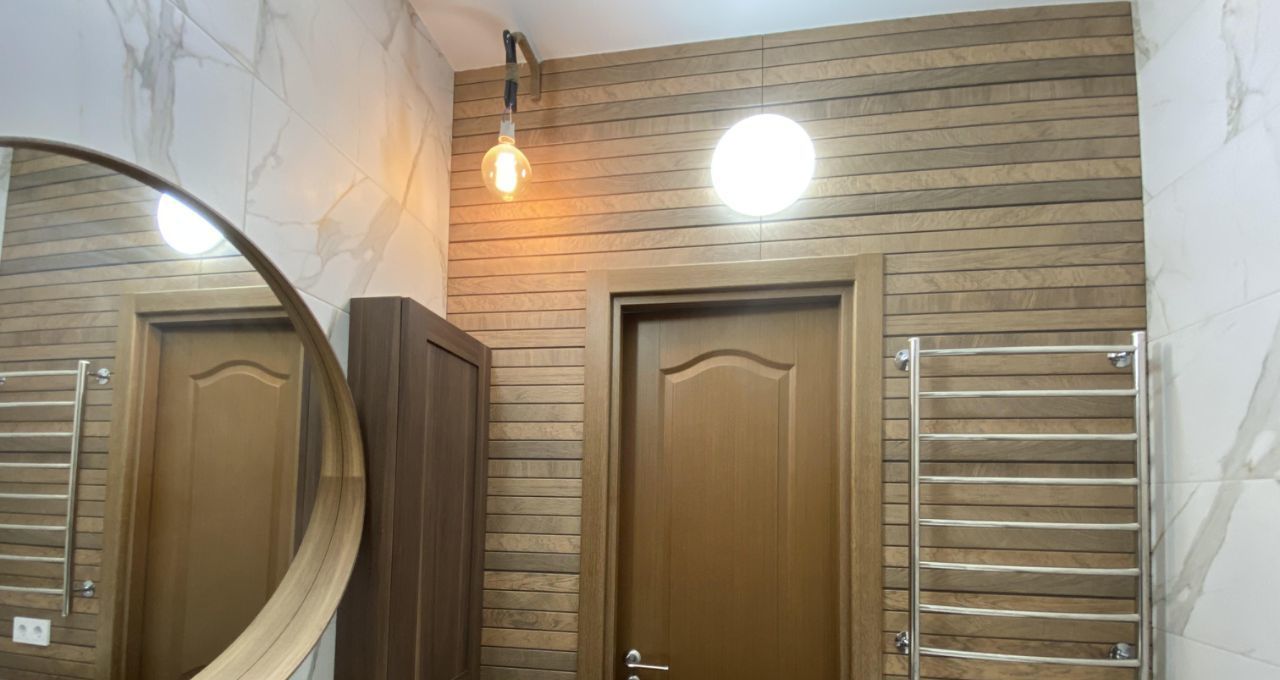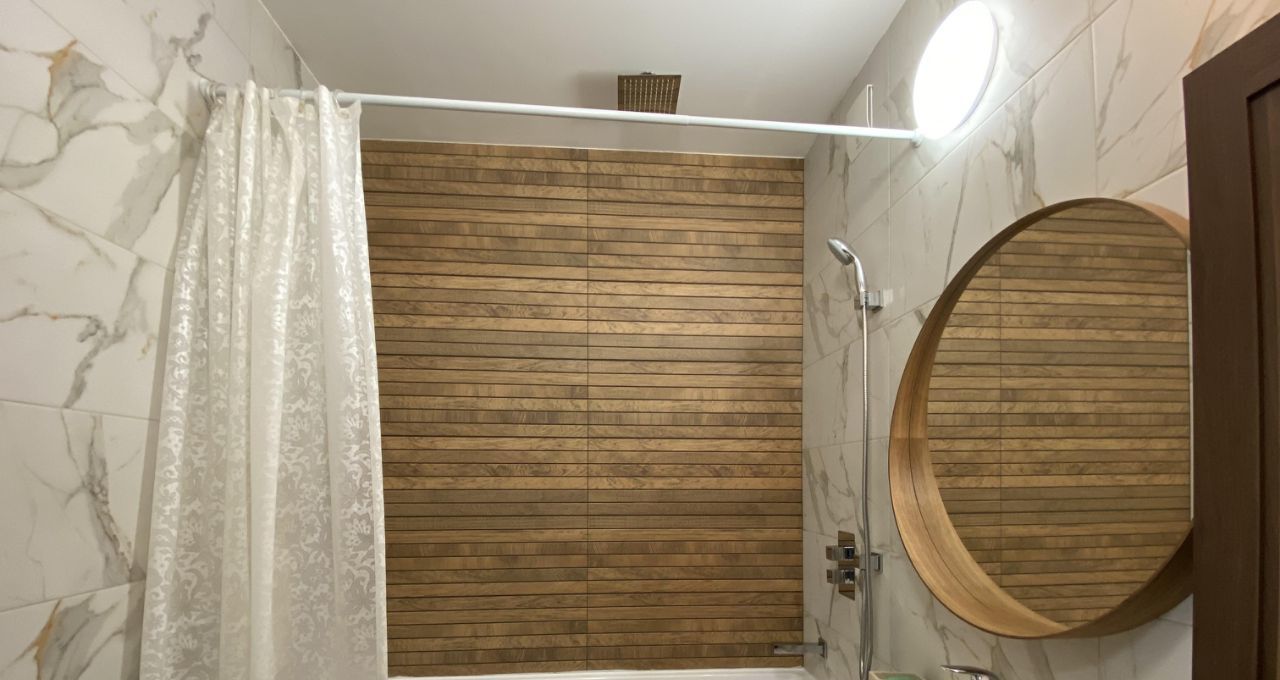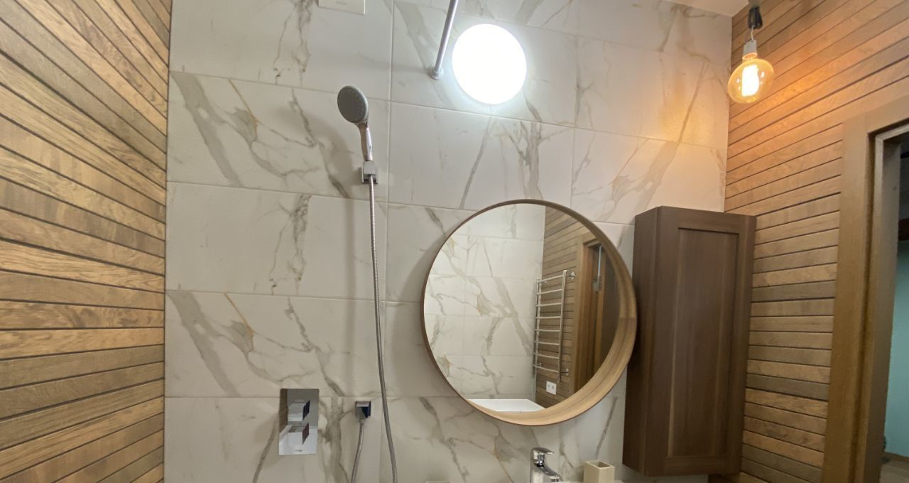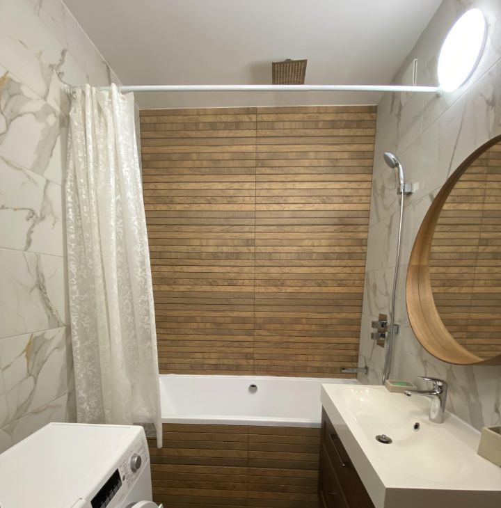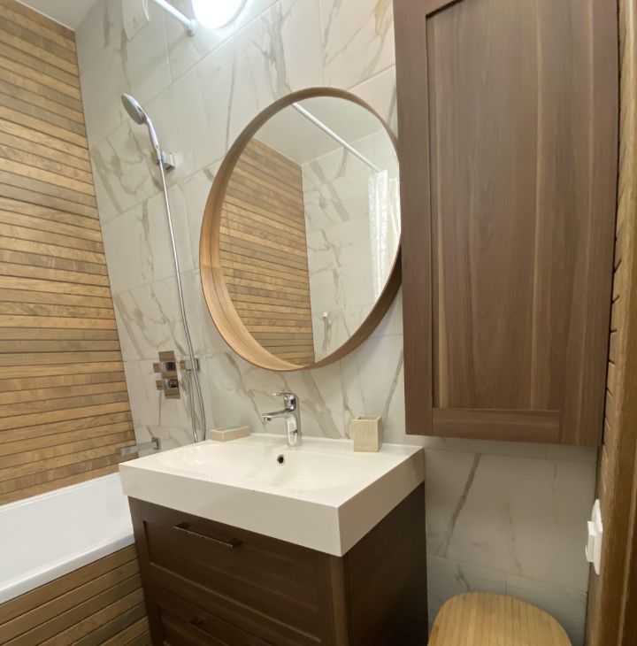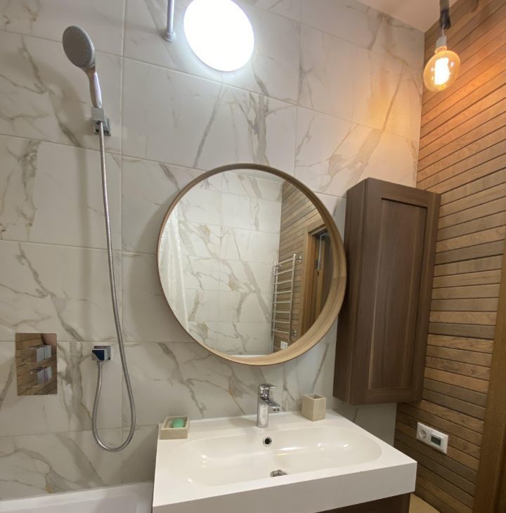Сан удел раздельный, итальянская плитка Polcelanossa, большая ванна, тропический душ, терморегуляция подачи воды (нет скачков в температуре)