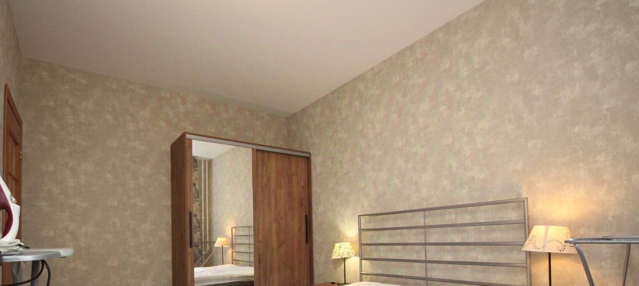 двухспальный раскладной диван, двухместная кровать, холодильник, морозильная камера, духовой шкаф, плита, чайник, стиральная машина, посудомоечная машина, 2 шкафа, гладильная доска, утюг, сушилка для вещей. В квартире есть балкон.