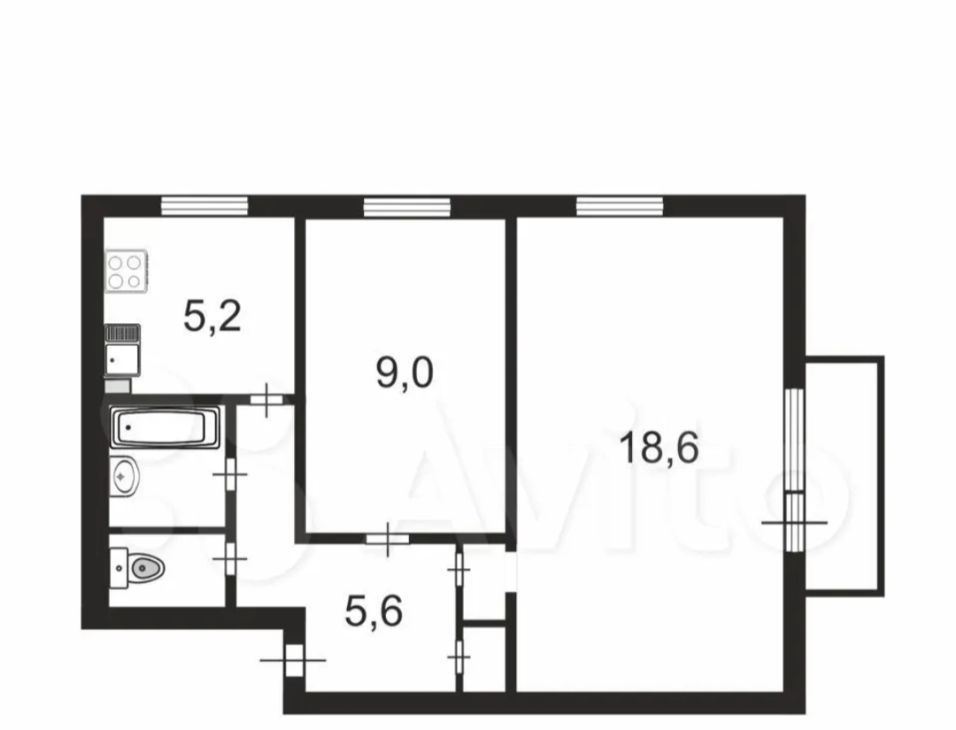 2-комнатная квартира: Санкт-Петербург, проспект Юрия Гагарина, 14к5 (44.9 м²)