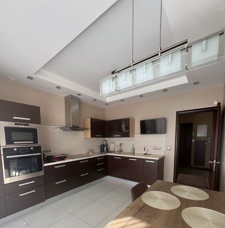В квартире вы найдете все необходимое для комфортного проживания. Есть большой шкаф для хранения вещей и гардеробная. На кухне имеется большой холодильник, духовая печь, индукционная плита, чайник, посудомойка, грильница. В ванной удобная душевая и полы с подогревом. Есть две просторные комнаты, в одной большой раскладывающийся диван и телевизор, а в другую вы можете поставить свой диван или кровать.