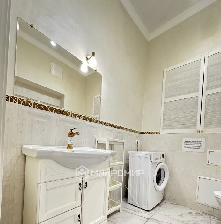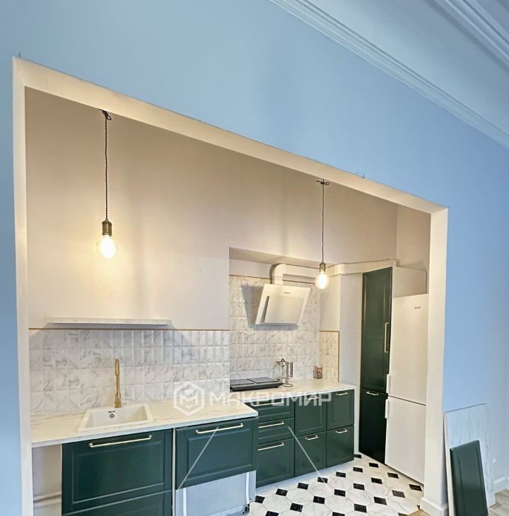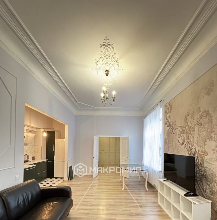 В квартире выполнен качественный современный ремонт. Через просторную прихожую вход в гостиную. В гостиной в нише расположена кухня. Из гостиной вход в спальню. Совмещенный санузел, установлена ванна.
