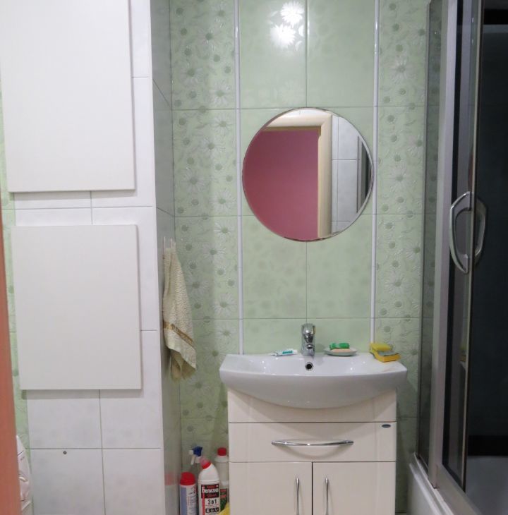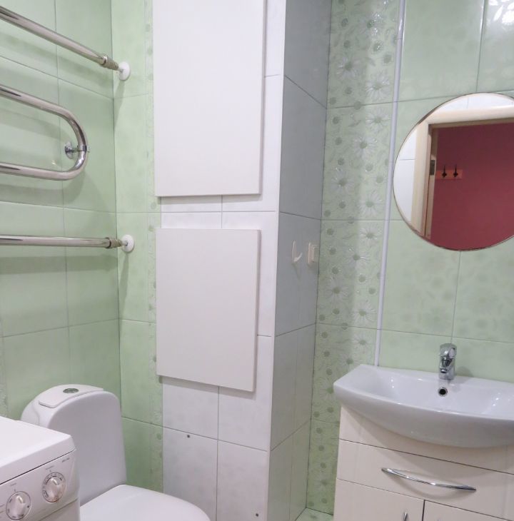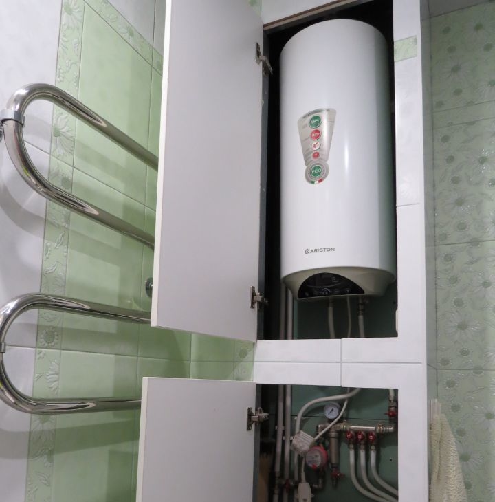 С/у совмещенный, теплый пол, кафель на полу и стенах, имеется бойлер.