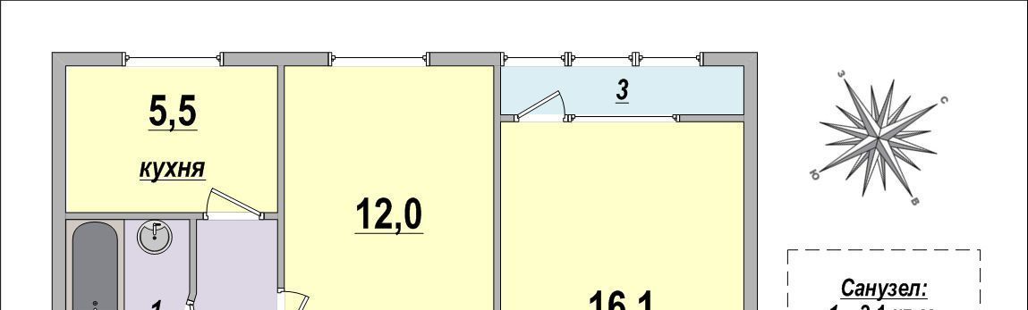 2-к кв. Санкт-Петербург Витебский просп., 41К3 (46.3 м²)