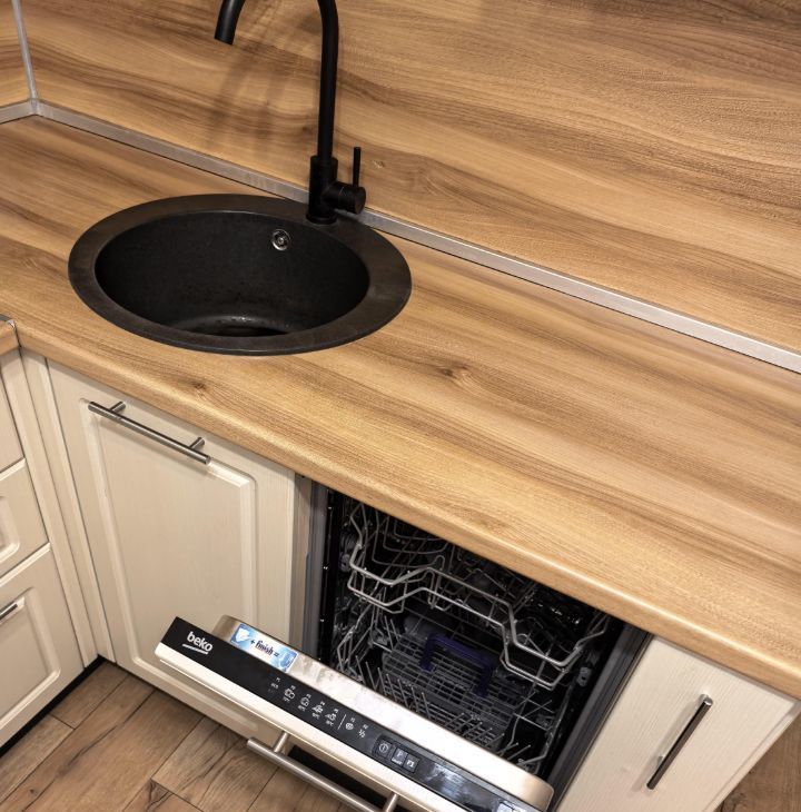 3. Кухня - холодильник, микроволновка, посудомоечная машина, электрический духовой шкаф, газовые комфорки.